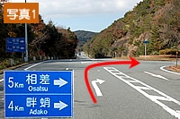 相差ICで写真1のように右折 100mほどで県道47号のT字路を左折後、道なり